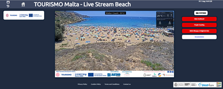The dashboard TOURISMO Malta – Live Stream provides access to the live Mixquqa beach camera monitoring.