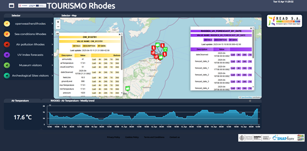 The main dashboard TOURISMO Rhodes is divided in three main areas: