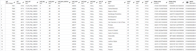 In PostGIS there are tables where the administrative areas are stored. To limit the data volume and allow easy delivery of the docker containers, in the MicroX installation of Snap4City [https://www.snap4city.org/