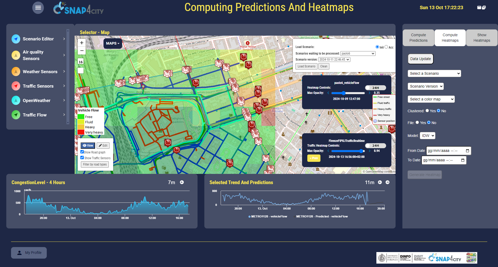 On the basis of some scenario the operator can define the an area on which it is interested to make/compute: (i) the traffic flow reconstruction, TFR; (ii) the heatmaps; etc.