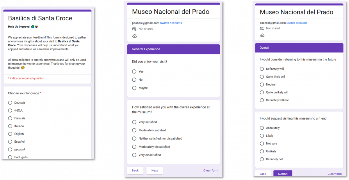 The forms can be referred to events, attractions, locations, etc. The limit is your fantasy. Any kind of linked questionnaire tool… we used Google Forms for trial and start.