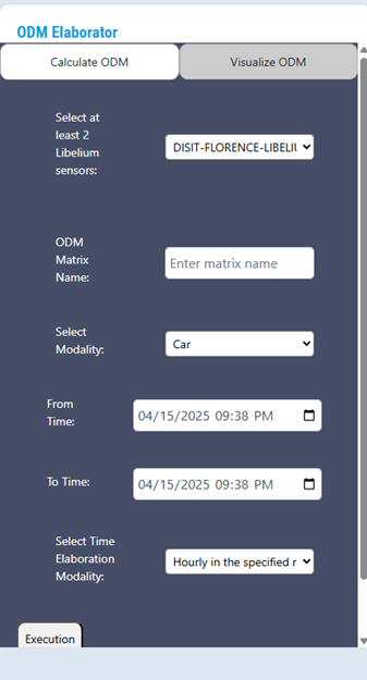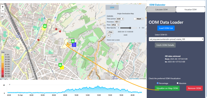 - The right panel which si responsible for the generation and visualization of Origin-Destination Matrixes, ODM in standard ODM: