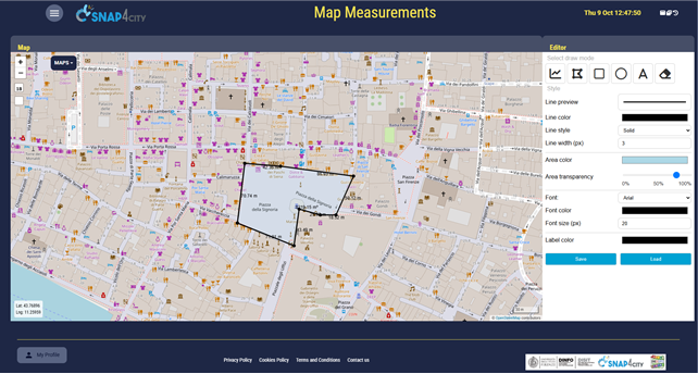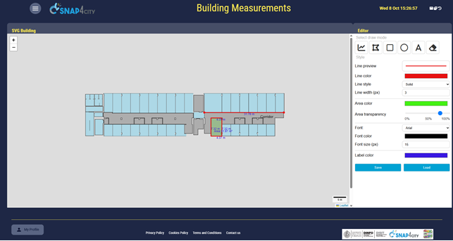 Project goal is to create a toolbox that let user select drawing tools and their customization (such as color, line style, font, font size and use them in a map where is loaded a plant of a building or a floor in SVG (Standard Vector Graphics) format and measure user’s features of interest. Then user can save/load its work.