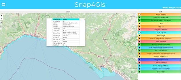 Snap4City MultiDataMap is capable to show GIS data directly taking them from GIS servers providing data/info in WFS, WMS, etc. GIS servers provide this data according to some EPSG, in JSON and/or XML/GML.