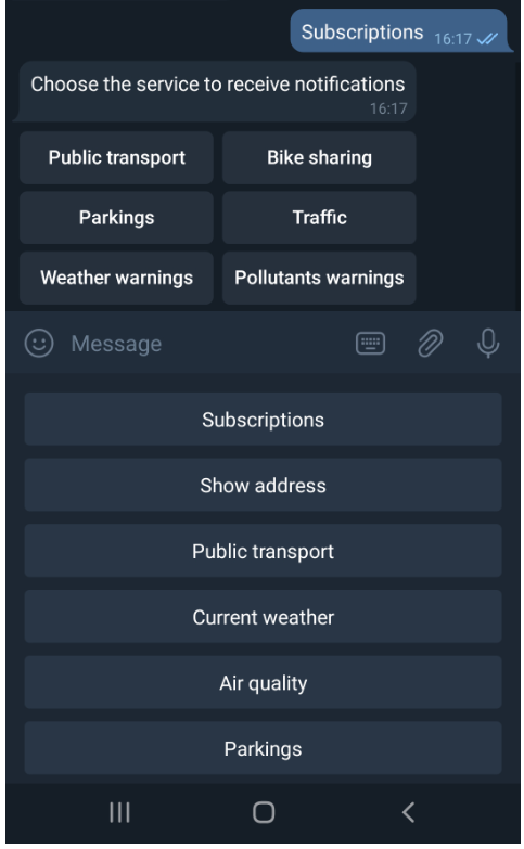 SnapBot is a Telegram Bot which provides real time smart city services to Telegram users, geolocalized, when you like, what you like.