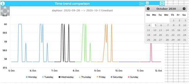 The monthWeek Typical Time Trend shows the typical trend of the requested sensor, referring to the 4 weeks of the requested month. The values shown are aligned to the first Monday of the month.