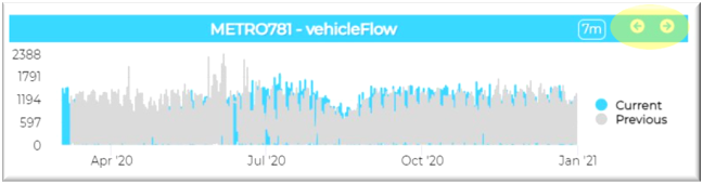 The final result will be something similar to the image below. By clicking the left/right arrows the data will be shown in the next/previous period of time.