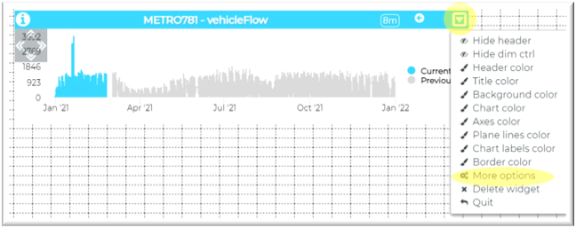 The period showed in the widget can cover different periods of time. By clicking the More option item in the contextual menu of the widget, in the Generic widget properties box, is possible to change a Period of time.