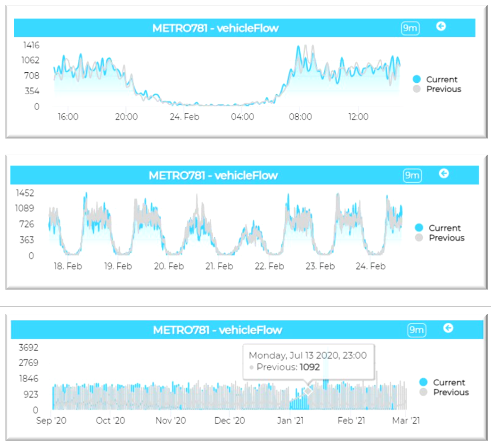 - previous week starting Monday: the actual trend is compared with the previous week, both starting from Monday.