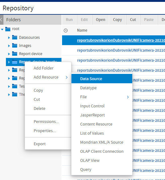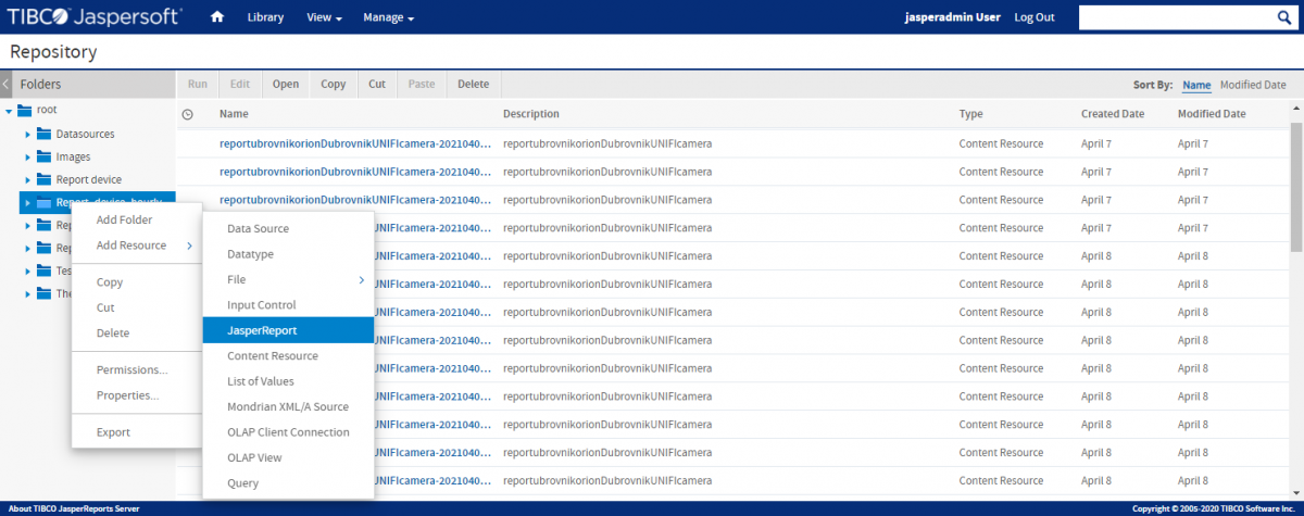 JasperReport Server is organized as a repository divided into directories that are used to manage various report elements such as jrxml files, datasources, images and so on.