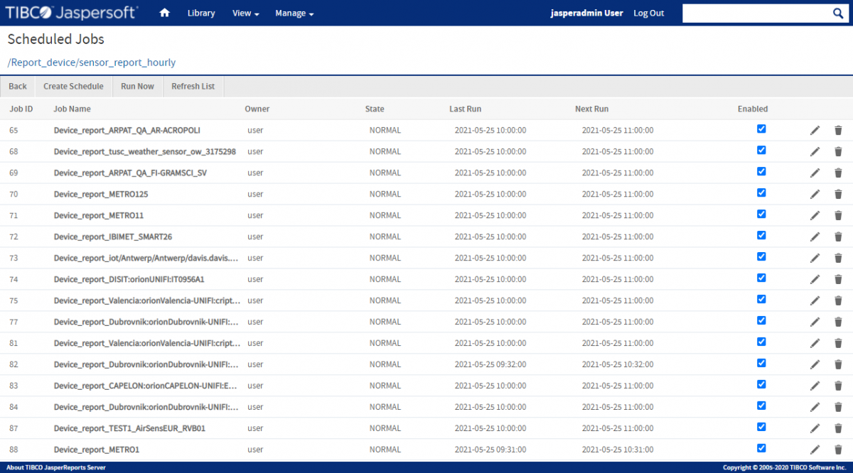 In Snap4city the creation of the Reports to be scheduled is largely carried out by a JasperReport Server REST API, which allows the creation, modification or deletion of running jobs.