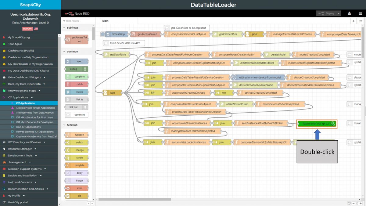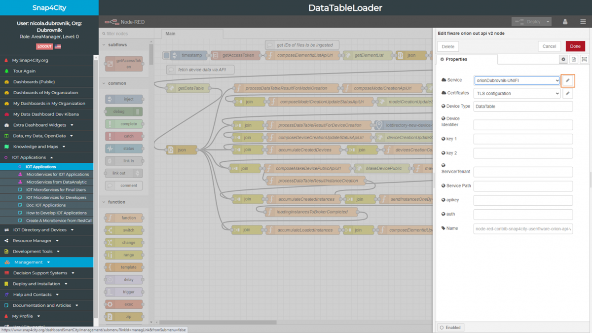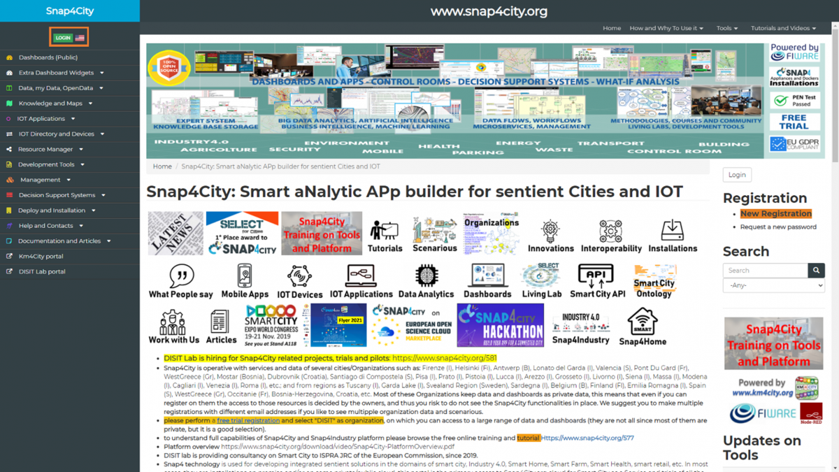 - Login: into the user’s account on the Snap4City platform. In fact, only authorized users, associated with an organization, are capable of running an IoT application on Snap4City the platform;