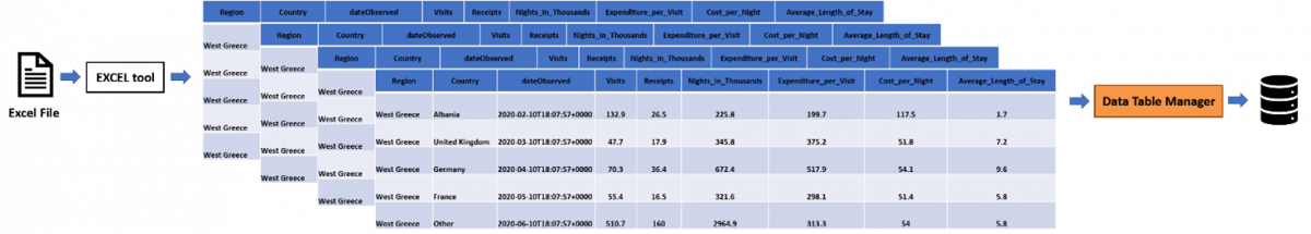 The first step of data ingestion in DTM is uploading the Excel file. DTM offers suitable flexibility by supporting multi-sheet excel files. Some guidelines are provided to the user to assist him on how to upload an Excel file properly. If the user does not upload an Excel file, following the provided guidelines, s/he needs to edit the file and re-upload the file again. Also, a table which presents the information of uploaded files by the user is available and includes: