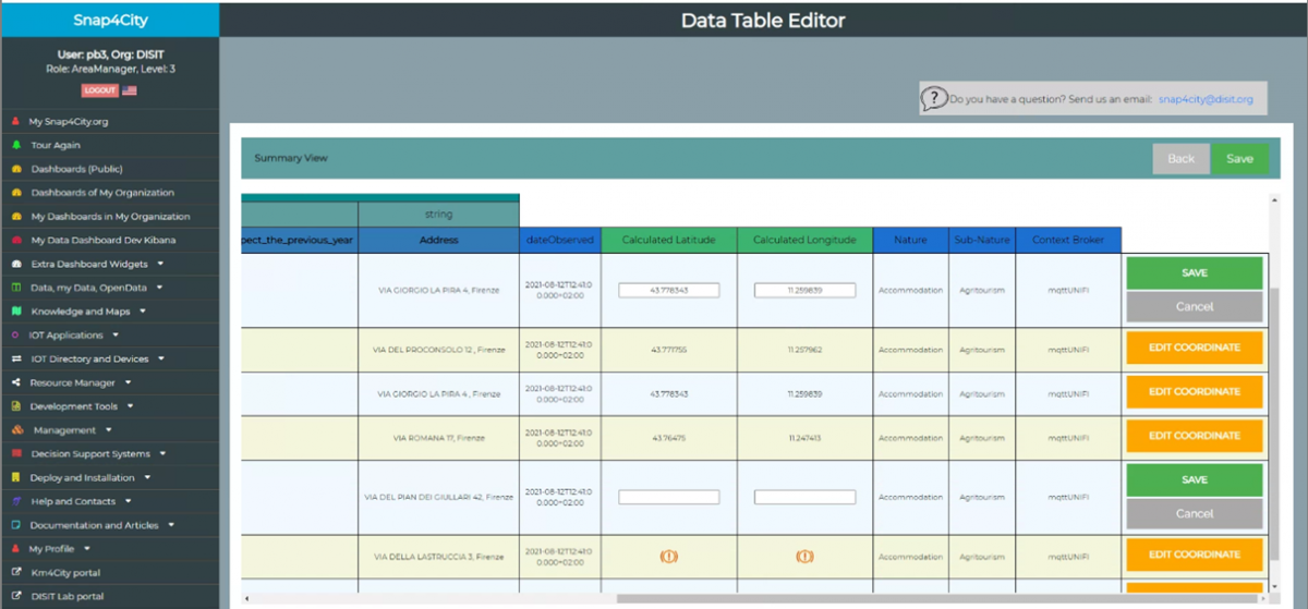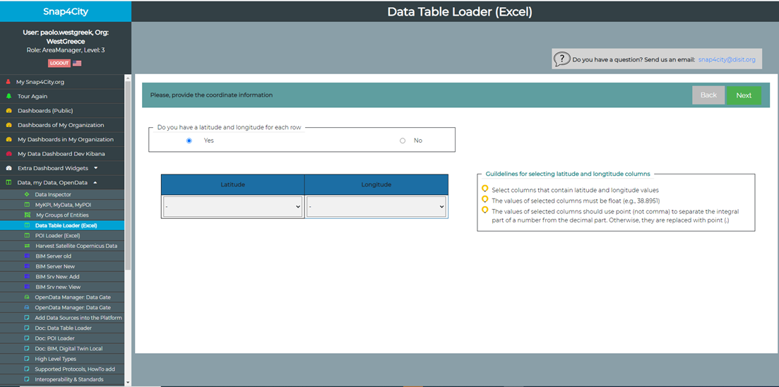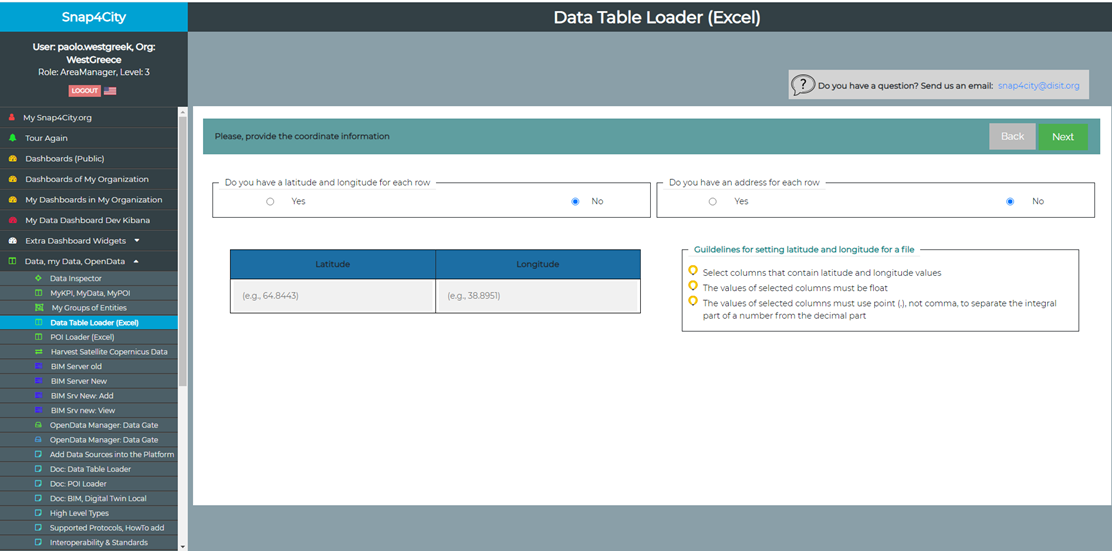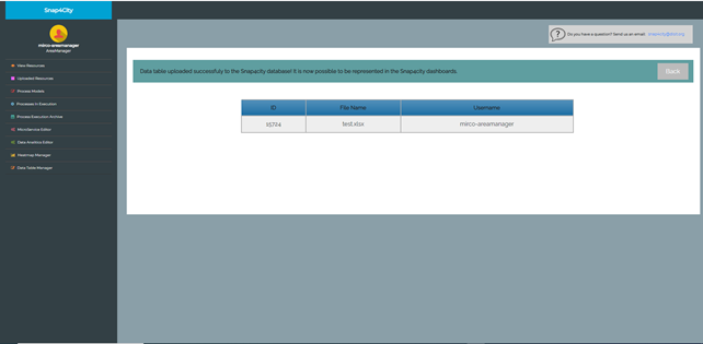 Data Table Loader (DTL) is a wizard-based tool designed and developed aimed at ingesting data provided in an Excel file by offering a flexible environment to establish a direct connection between the file data and the Snap4City platform. Using DTL, it is possible to import (static) data, by uploading an Excel file and execute a set of operations to make the uploaded data compatible with the Snap4City platform and the KM4City multi-ontology. The data is uploaded as excel file in the tool, also asking to the providers to add some descriptors for each dataset (some of them connected to the KM4City classes), then is automatically aggregated to the other processed data in the platform in a semantic way.