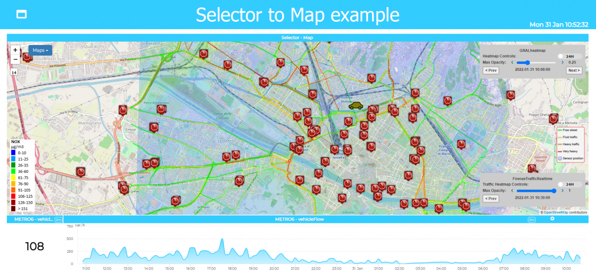 The Selector to Map node is a microservice included in the Snap4City Node-Red library for representing entities in the multi data map widget (on dashboards) from Node-RED, such as: IoT Sensor Cateogires, POIs, single IoT Sensors, Heatmaps, MyKPI etc.