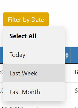 In the "Date" filter, the alert events can be filtered according to their creation date. Whether they were created today, in the past week, or in the last month.