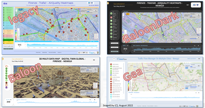 - THIS PAGE provides a summary about how it is possible to develop a new THEME for your apllications. Snap4City provides a number of THEMES already produced and accessible on each installation, they are provided in souce code so that you can start customization from them.