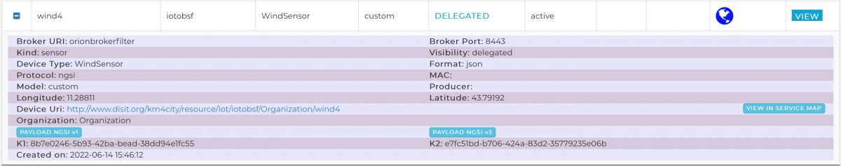Device info detailed view available by the delegated user (in addition to READ_ACCESS, the NEW_DATA_IN button is also available)
