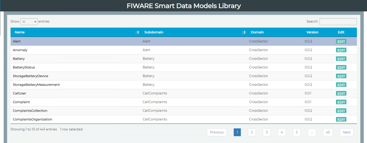 “MENU -> IOT Directory and Devices >FIWARE -Smart Data Models Library”