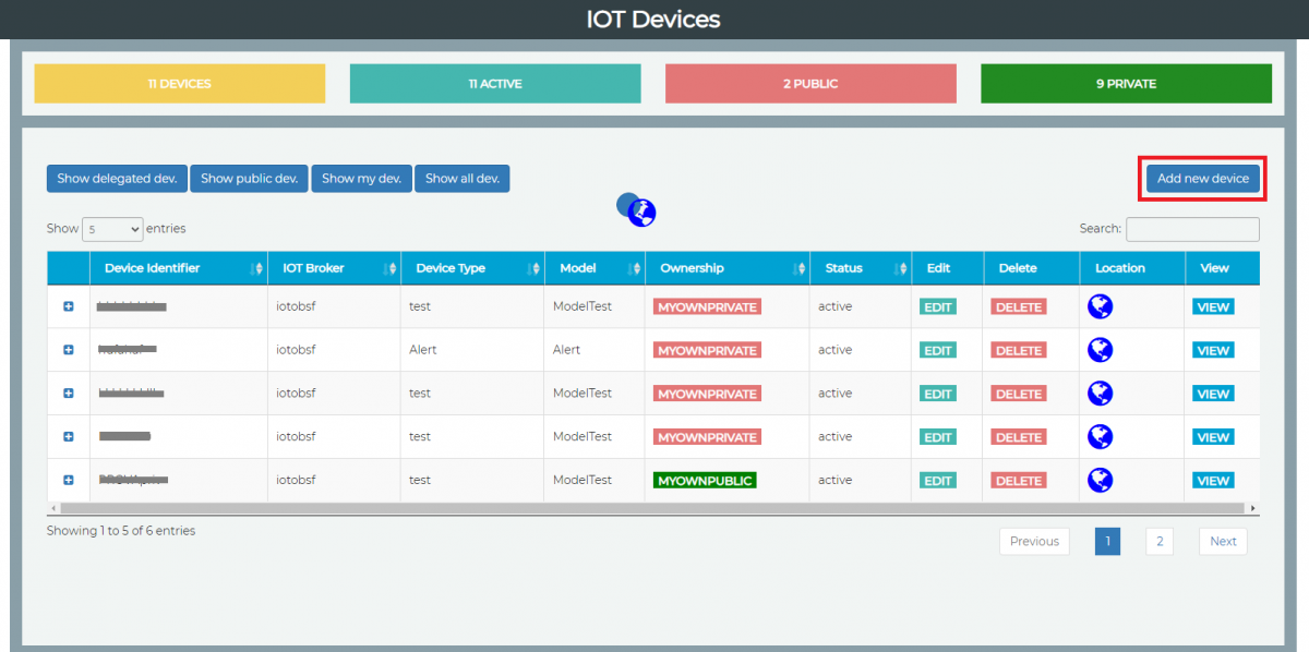 - Manage IoT Device Model and Device Data Type ownership and access grant. This permits assignment/changing of the ownership and the creation of access grants to the entities (IoT Brokers, Devices, and Data Models). In delegation management, it must be possible to grant, list and revoke them. According to GDPR, any entity must start as private of the owner. The delegation should be possible for organizations, groups of users, and single users and can be different types. In particular, it can be about: