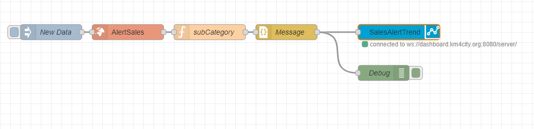 Then, the user can be able to make own Nodo-RED flow to address data from device with their visualizzation. A simple example is below:
