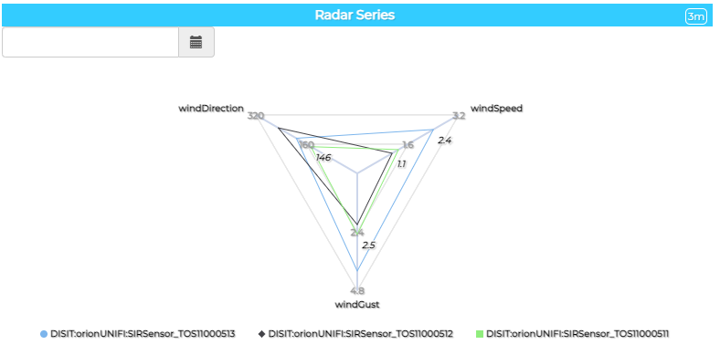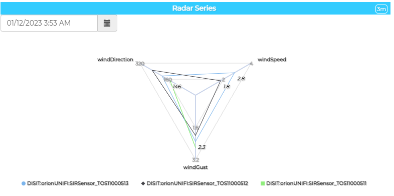 By default, the widgetRadarSeries shows the most recent data, but through the input of the datetime picker it is possible to view the metrics data at a specific date and time.