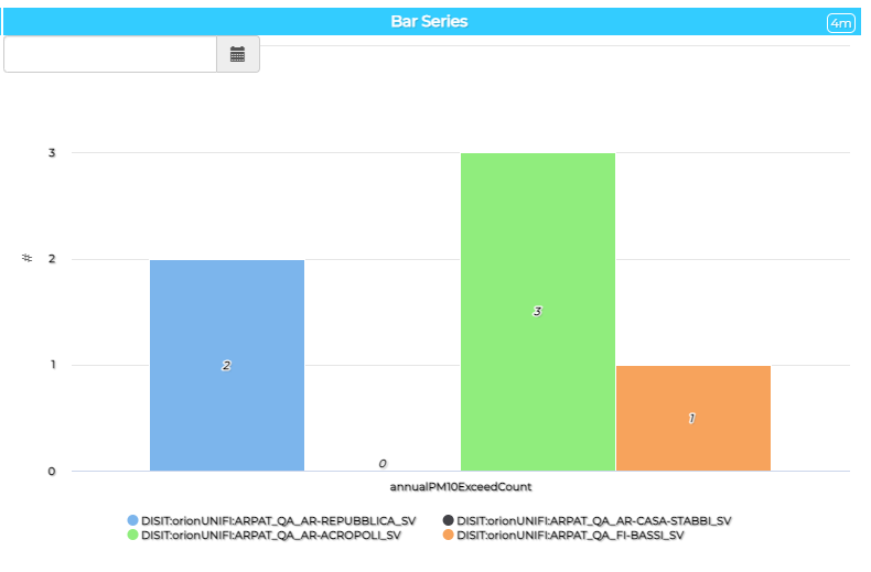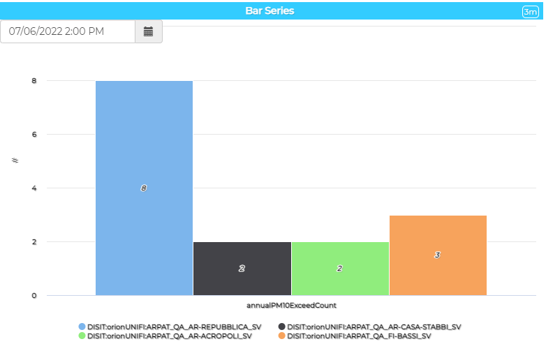 By default, the widgetBarSeries shows the most recent data, but through the input of the datetime picker it is possible to view the metrics data at a specific date and time.