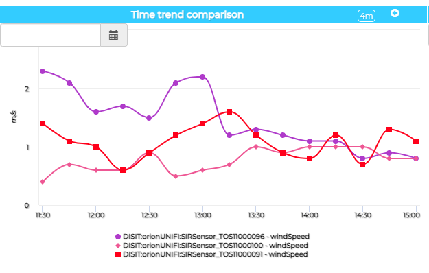 If we set the datetime picker to 1 February 2023 at 12:00, keeping the same time range, the graph will automatically be recalculated with the data from 01/01/2023 12:00 to 02/01/2023 12:00. It is also possible to change the time range while keeping the new set datetimepicker final point.