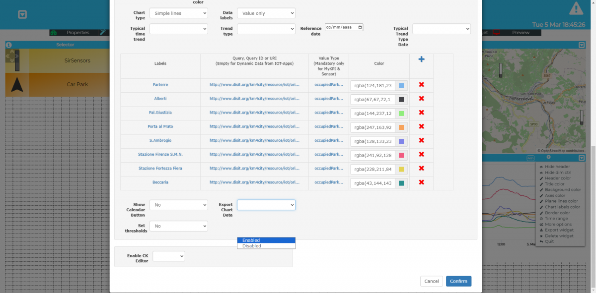 - Scroll down the pop up window and click on the "Export Chart Data" field and select "Enable".